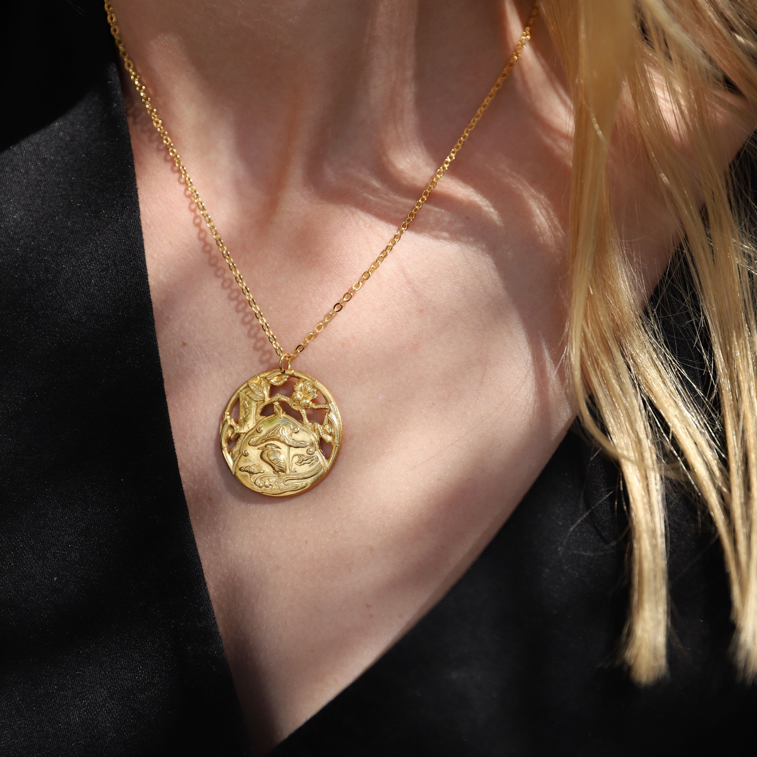 Collier Tori paysage japonais en laiton doré à l’or fin 24k. Fait à la main à partir d’un estampé fabriqué en France de manière artisanale. Garanti sans nickel et sans plomb. Fabrication eco responsable. Longueur réglable. Disponible sur notre site